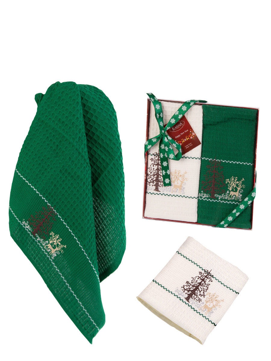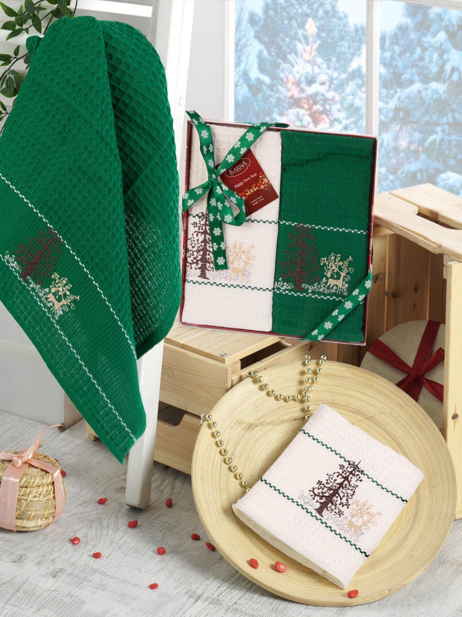 La deg hengi til julestemningen med vårt håndklesett med juletema, laget av førsteklasses 100 % bomullsgarn. Disse håndklærne har en eksepsjonell mykhet og utmerket vannabsorpsjon.
